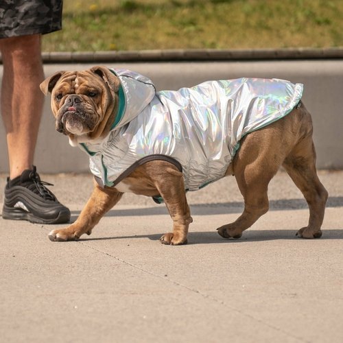 Say hello to the next generation in dog raincoats! The new exclusive GF PET Reversible Raincoat in Neon and Iridescent print is a unisex wardrobe staple and has everything! It features ELASTO-FIT Technology for a great fit; it is waterproof, reflective and reversible. Buttery soft, waterproof PVA on one side and luxurious, water-resistant polyester printed design on the other. Tackable hood can be worn up or down. Style and functionality combined!