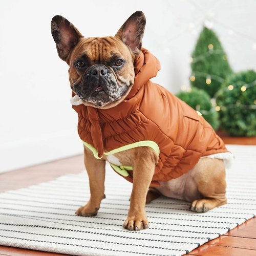 The GF PET Elasto-FIT Super Puff Parka is sumptuously puffy, snuggly warm and luxuriously gorgeous! With fresh colors and a tackable hood, this parka bridges generations, appealing to all age groups of dogs and owners. Enjoy every bit of warmth and comfort you have come to expect from GF PET in this Super Puff sensation! Deep faux pockets, matching lined hood, and GF PET signature contrast pocket tabs and binding. Turn heads at playtime of while strutting down the street, and sink into the warm and comfy popcorn sherpa fleece lining. Water repellent and super adjustable, with patented Elasto-FIT technology! Designed dogs who want it all!!