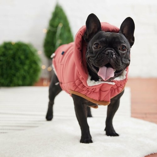 The GF PET Elasto-FIT Super Puff Parka is sumptuously puffy, snuggly warm and luxuriously gorgeous! With fresh colors and a tackable hood, this parka bridges generations, appealing to all age groups of dogs and owners. Enjoy every bit of warmth and comfort you have come to expect from GF PET in this Super Puff sensation! Deep faux pockets, matching lined hood, and GF PET signature contrast pocket tabs and binding. Turn heads at playtime of while strutting down the street, and sink into the warm and comfy popcorn sherpa fleece lining. Water repellent and super adjustable, with patented Elasto-FIT technology! Designed dogs who want it all!!